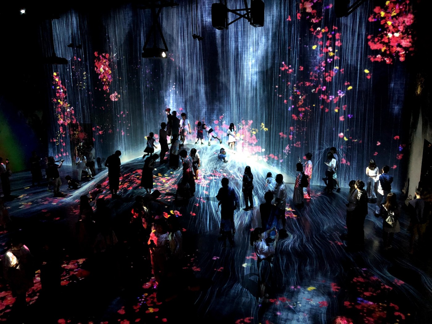 Un labirinto di cristalli LED che cambiano colore e simulano la pioggia, l’arcobaleno, il vento e altri fenomeni atmosferici in base a ciò che viene selezionato dal pubblico in un’app. Un parco giochi con scivoli, tappeti elastici, percorsi a ostacoli e palloni con specifiche animazioni causate dal movimento di chi le utilizza. Queste sono solo alcune delle opere con cui abbiamo interagito nel primo museo d’arte digitale al mondo: il MORI Building Digital Art Museum: TeamLab Borderless.