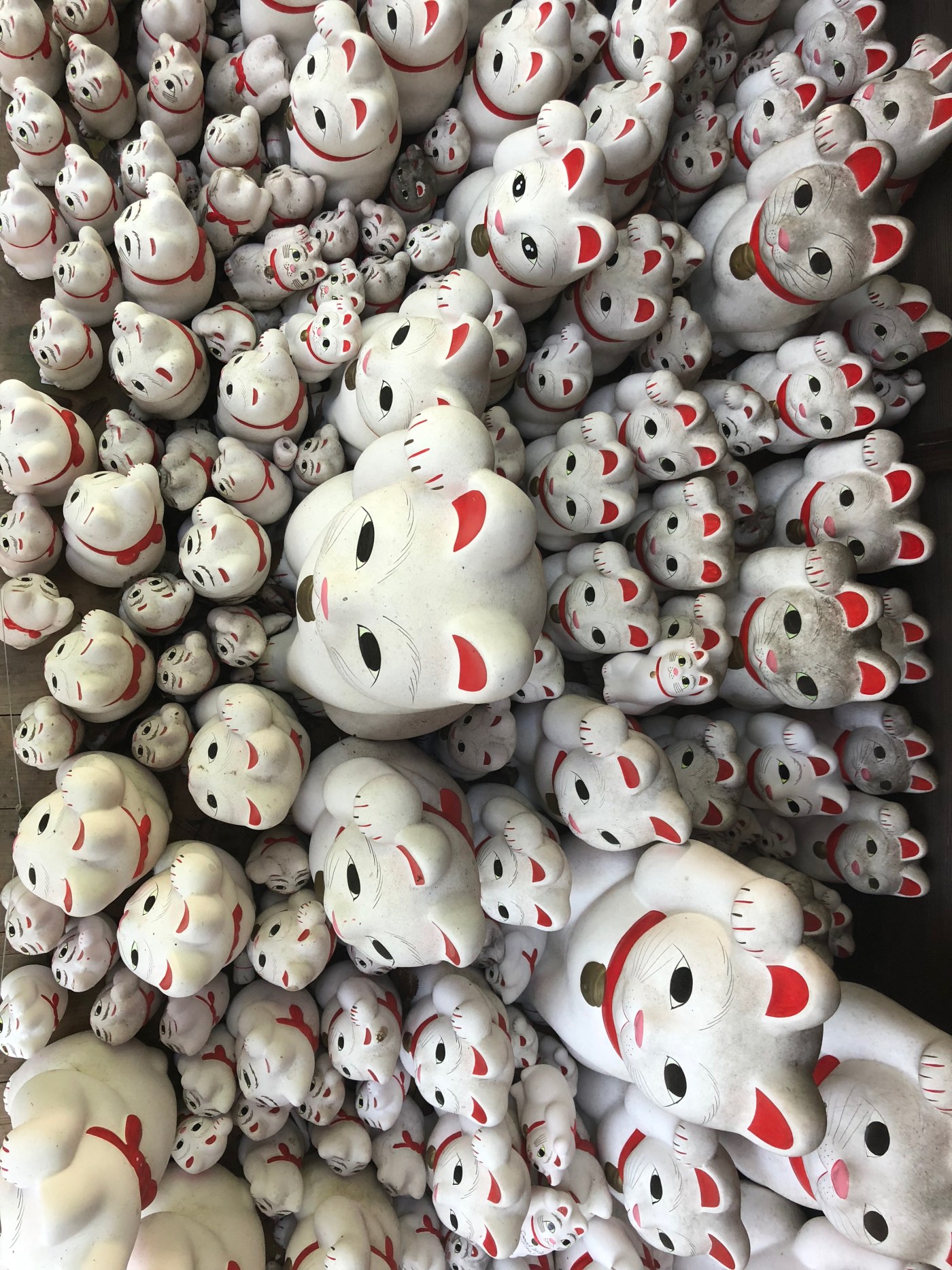 E ovviamente la principale attrazione sono loro: i maneki neko. Ce ne sono di tantissime dimensioni e sono disposti su una serie di scaffali e altre costruzioni nella zona laterale del principale edificio di preghiera. Vedere tutti queste statuette di gatti bianchi e neri è sorprendente ma allo stesso tempo devo ammettere un po’ inquietante. Tra l’altro due giorni fa Tokyo è stata colpita da un tifone… mi domando se chi gestisce il tempio abbia messo tutti al riparo durante la notte per evitare che i maneki neko facessero il giro dell’intero Giappone!