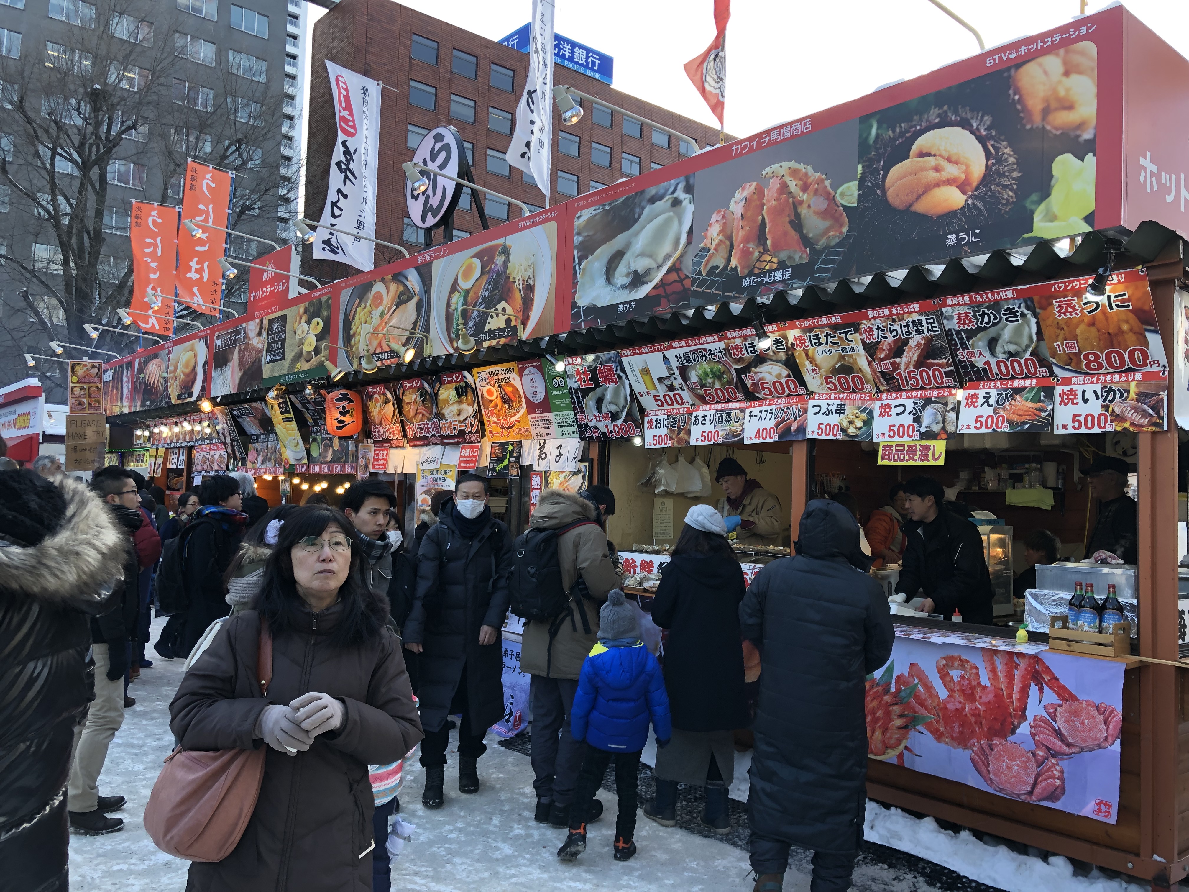 Lungo il parco poi sono allestite delle aree ristorazione con il classico cibo da festival e le specialità locali, tra cui spiccano gli spiedini di granchio e il ramen. Noi non ci siamo fermati a mangiare al festival, ma abbiamo provato il Mojito caldo – bere qualcosa di caldo mentre passeggiate lungo il parco è essenziale a causa delle temperature molto rigide. Se avete bisogno di una pausa al calduccio mentre visitate Odori Koen, potete fermarvi nelle stanze relax allestite per il festival.