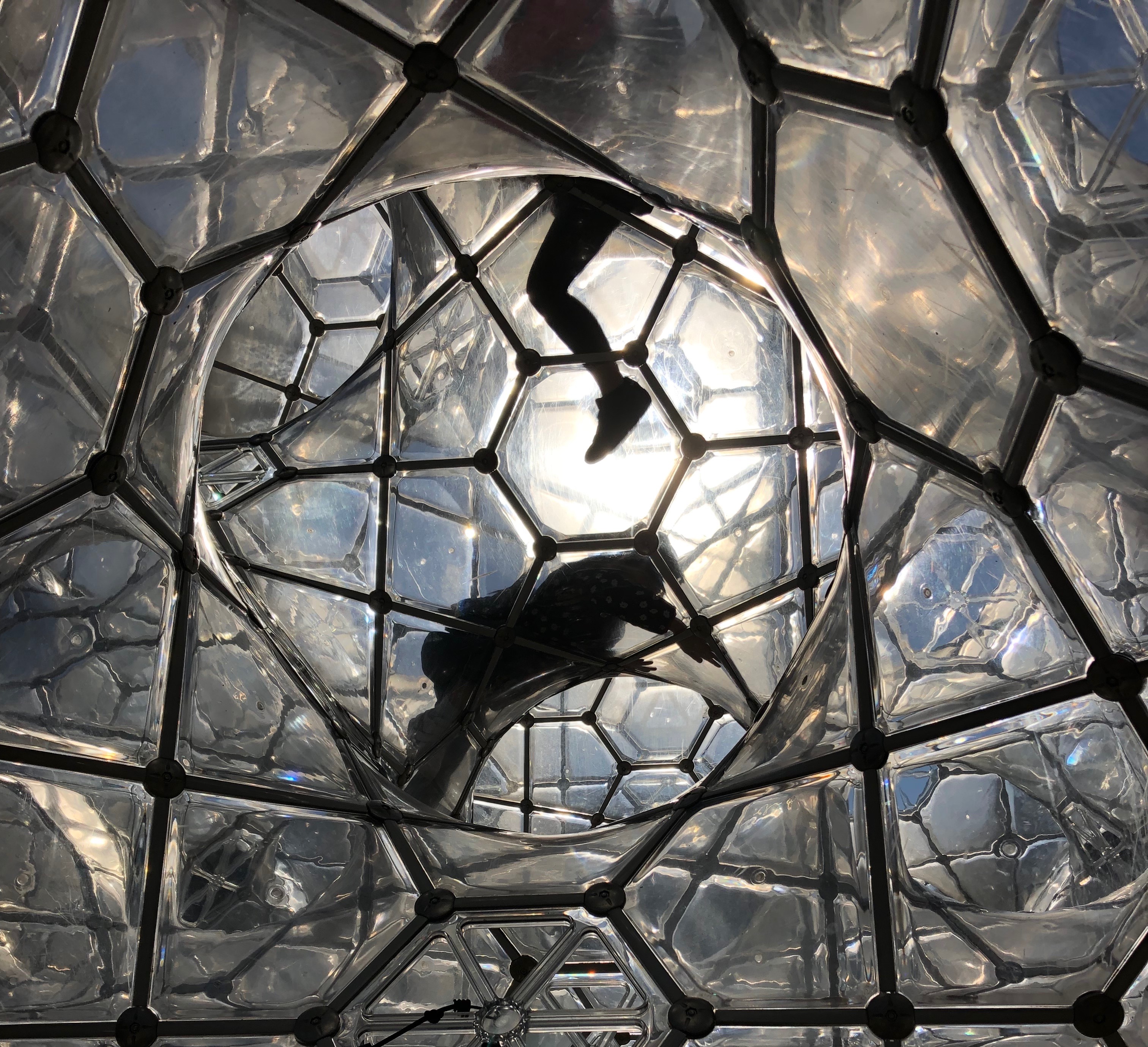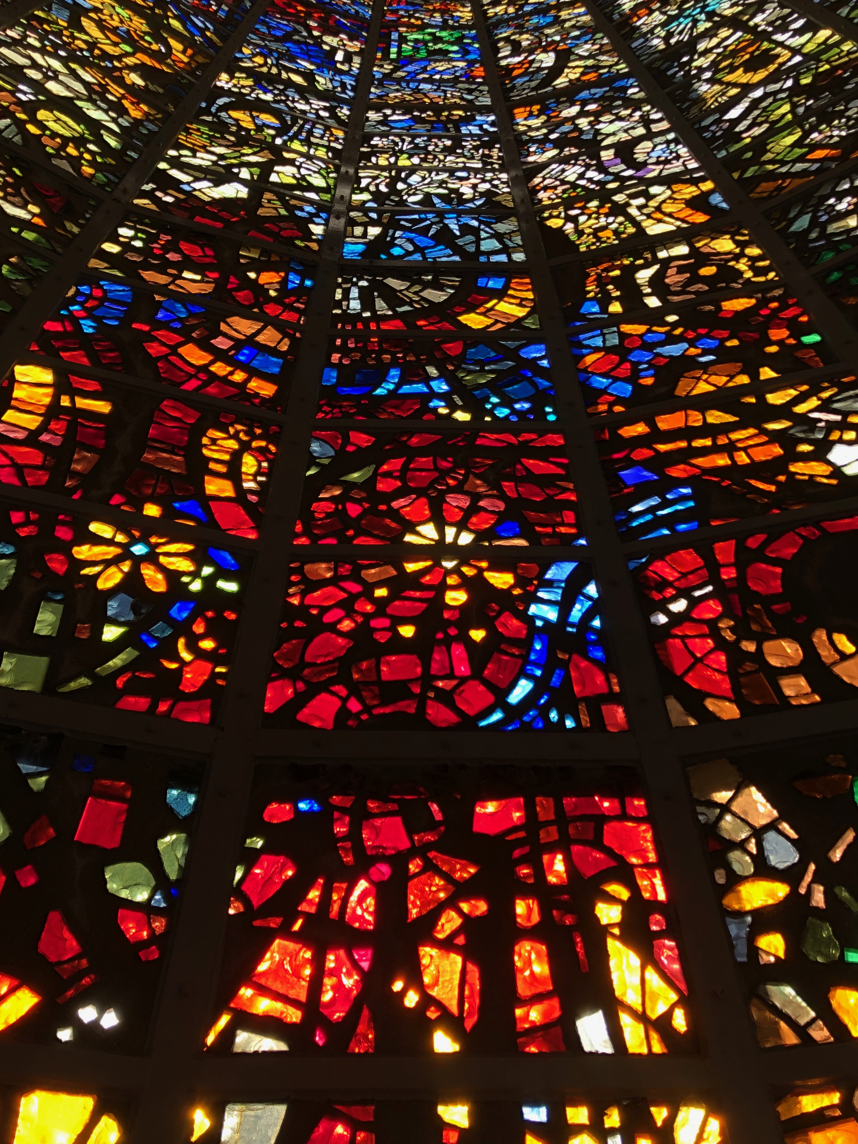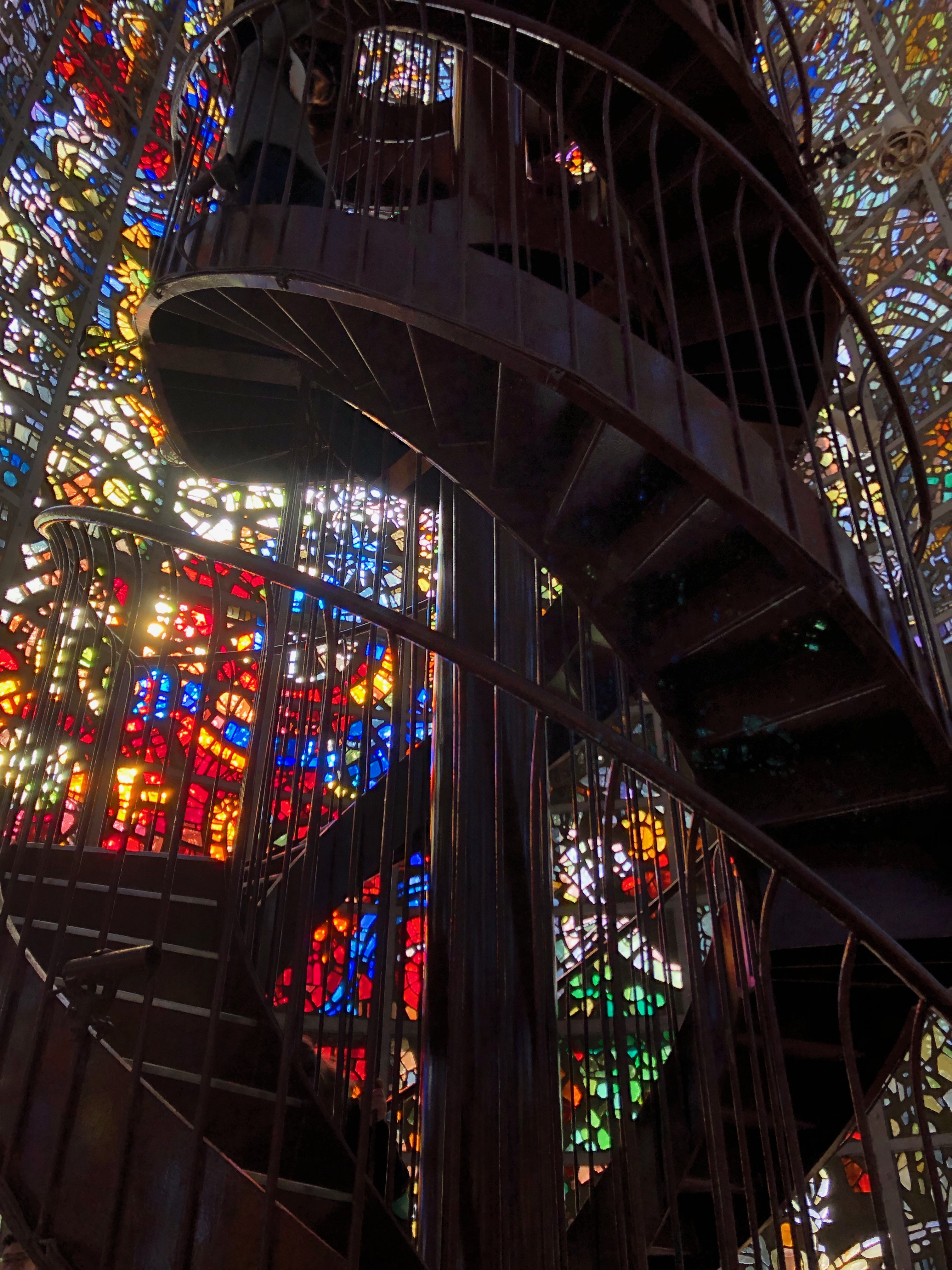 Passeggiando nel parco si arriva ad un’altra delle mie opere preferite viste nel museo: la Scultura Sinfonica. Si tratta di un’alta torre in vetro colorato dalla cima della quale si può ammirare il panorama circostante. Siamo stati molto fortunati a trovare il sole, per poter goderci al massimo le sfumature di colore all’interno della torre.
