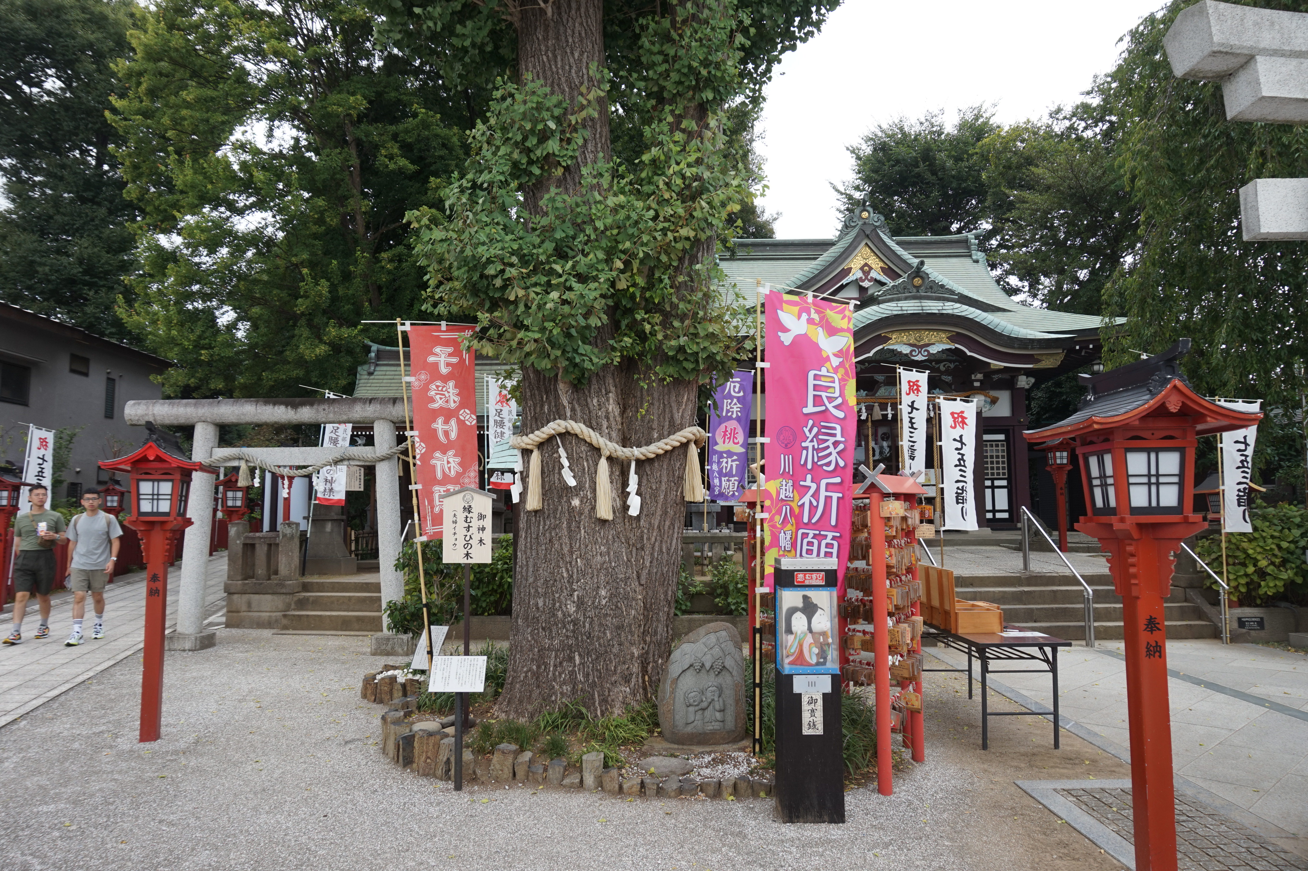Anche il tempio Hikawa, come molti dei templi di Kawagoe, è dedicato alla ricerca dell’anima gemella e alla coltivazione delle relazioni interpersonali. Ci sono anche qui numerose “attività” da svolgere, come passeggiare sotto un tunnel di tavolette su cui sono state scritte preghiere (ema), oppure camminare intorno ai due alberi sacri del tempio per ricevere la forza per affrontare qualcosa.