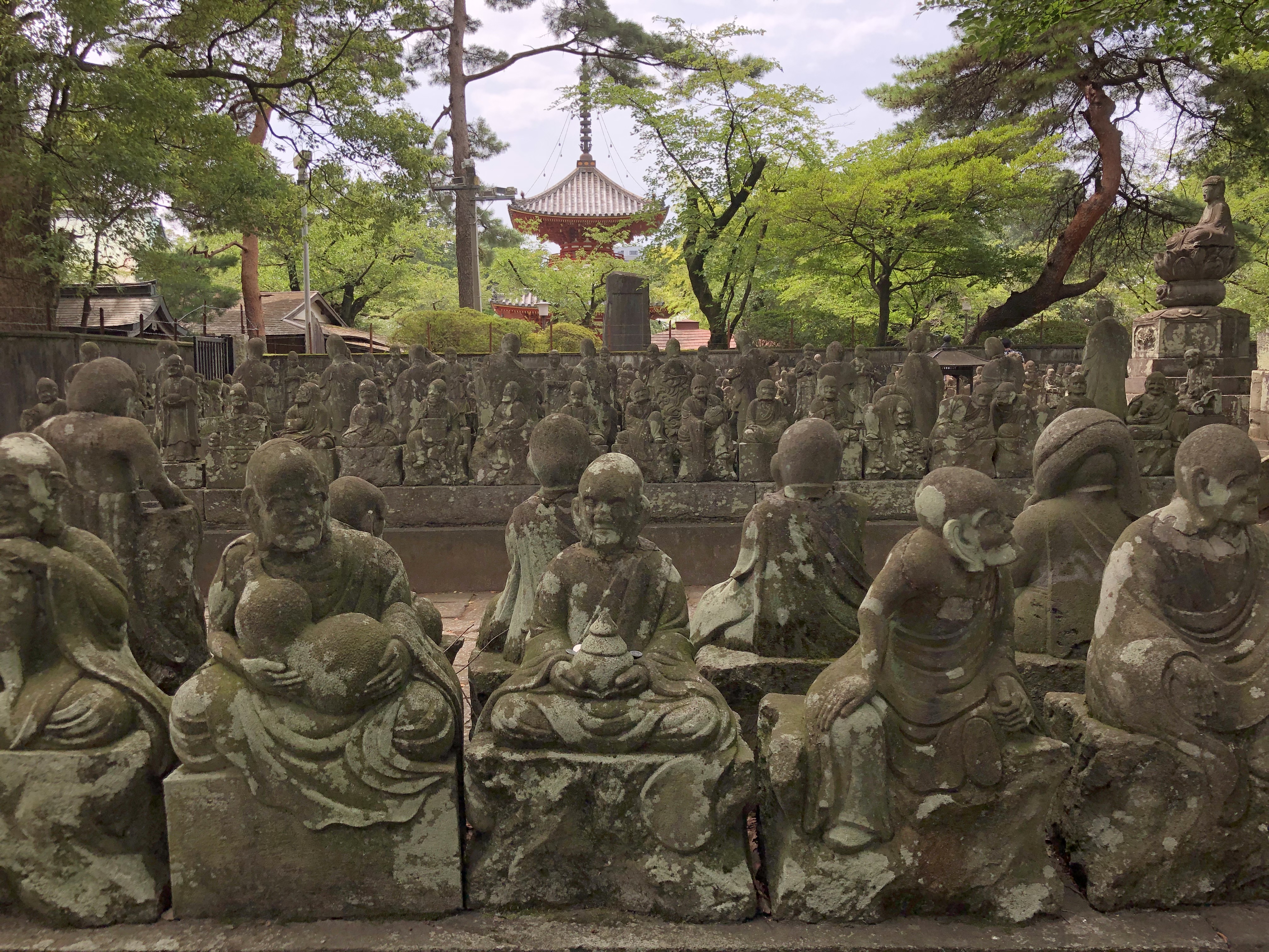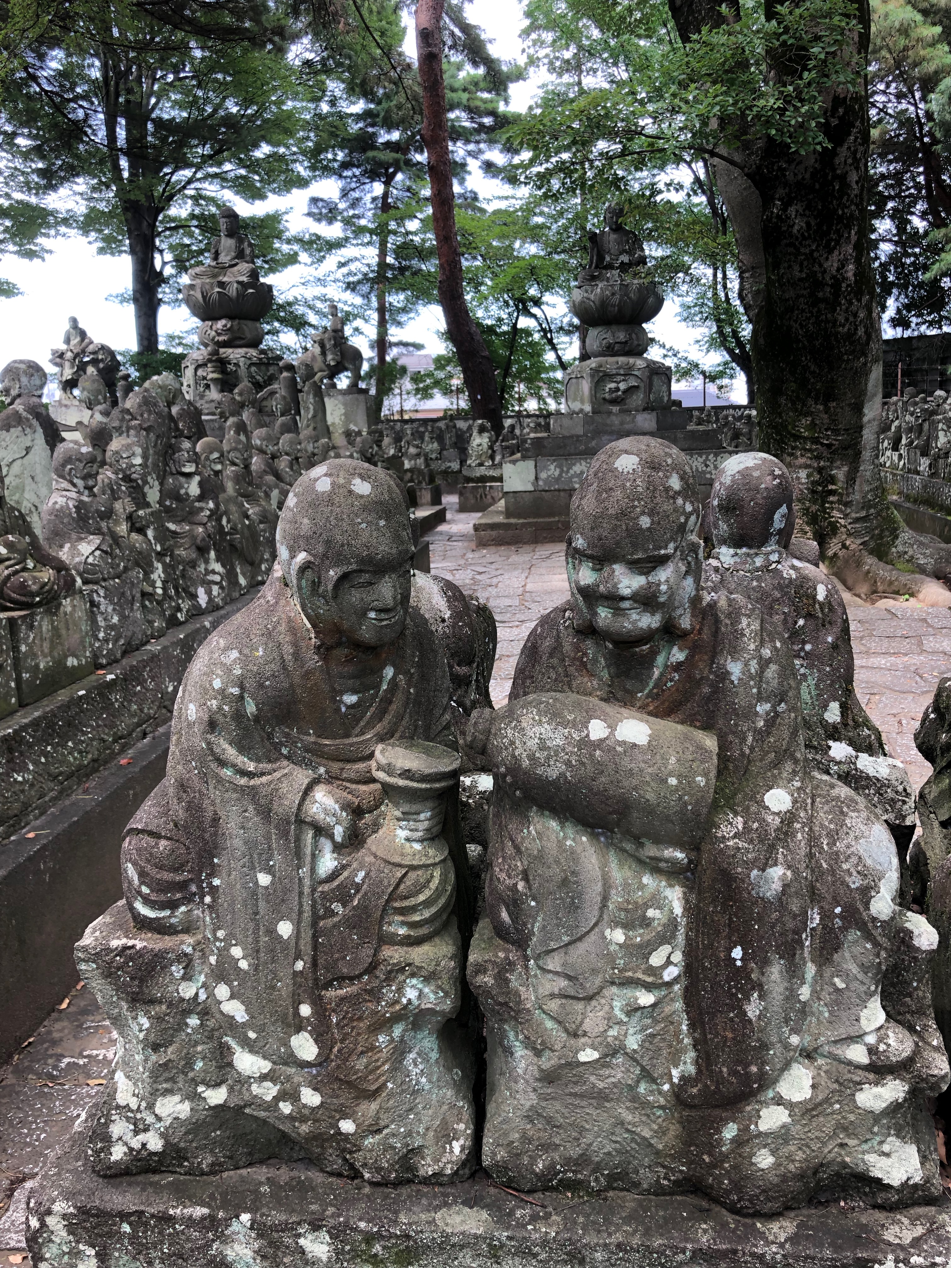 The 500 statues of Rakan, actually 540 if we want to be precise, represent the disciples of Buddha, each with its own facial expression. It is said that if you feel among the statues in the dead of the night you will find one that is warm. Mark it, and come back during the day, and you will see it is the statue most resembling yourself.