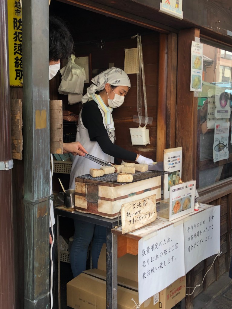 Sicuramente la zona più famosa (e affollata) di Kawagoe è il distretto dei mercanti. Kawagoe in epoca Edo era uno dei principali snodi commerciali della regione del Kanto, e proprio il distretto dei mercanti rappresentava il fulcro delle attività. Ci sono moltissimi negozietti con prodotti artigianali e tra le cose da provare vi consigliamo la birra locale COEDO, le patate dolci fritte del negozio Koedo Osatsuan (preparatevi a code di 30 minuti in questo caso!), o gli onigiri grigliati di Nakaichi.