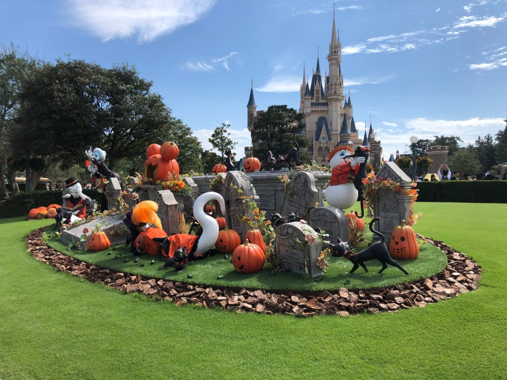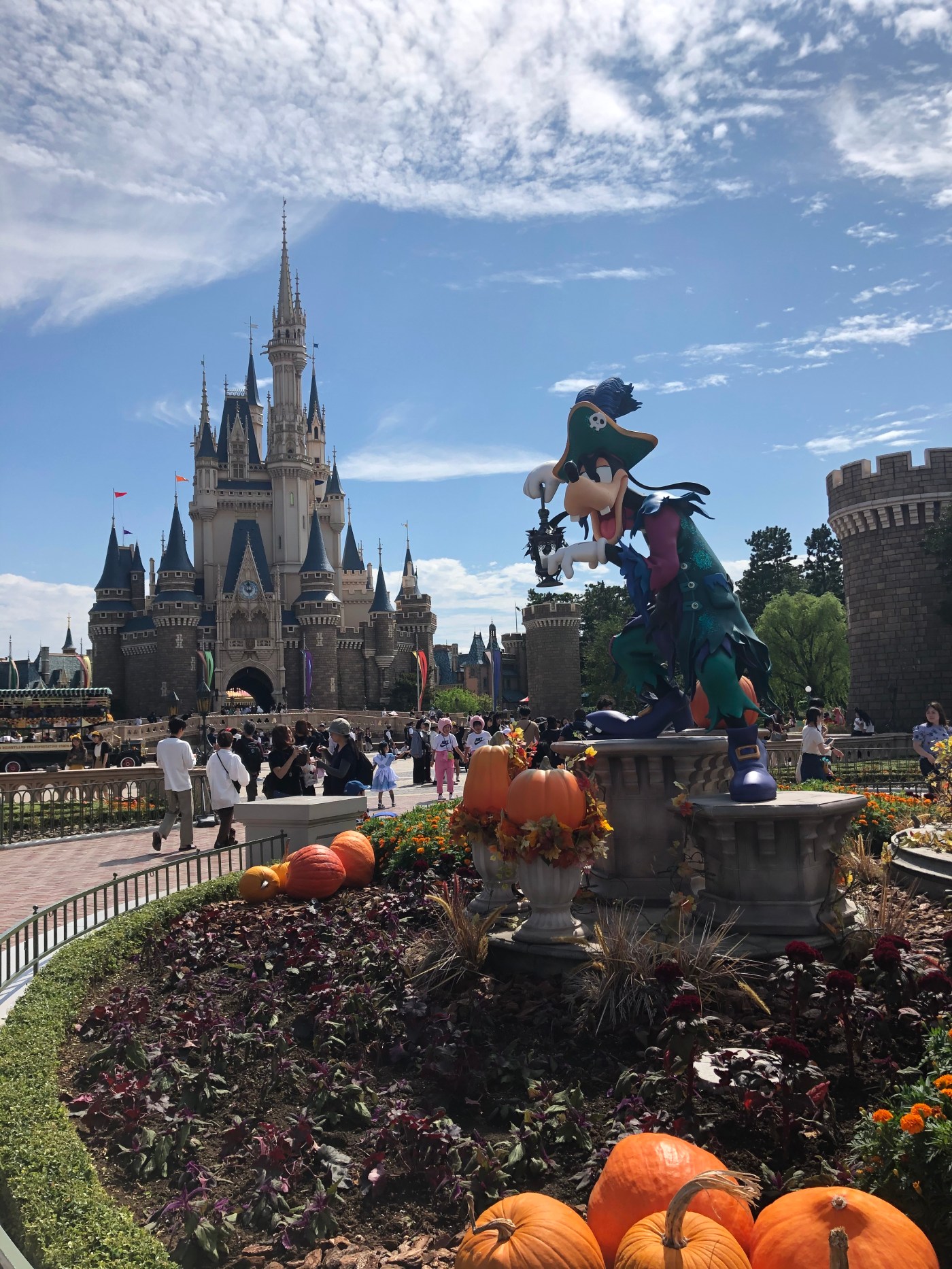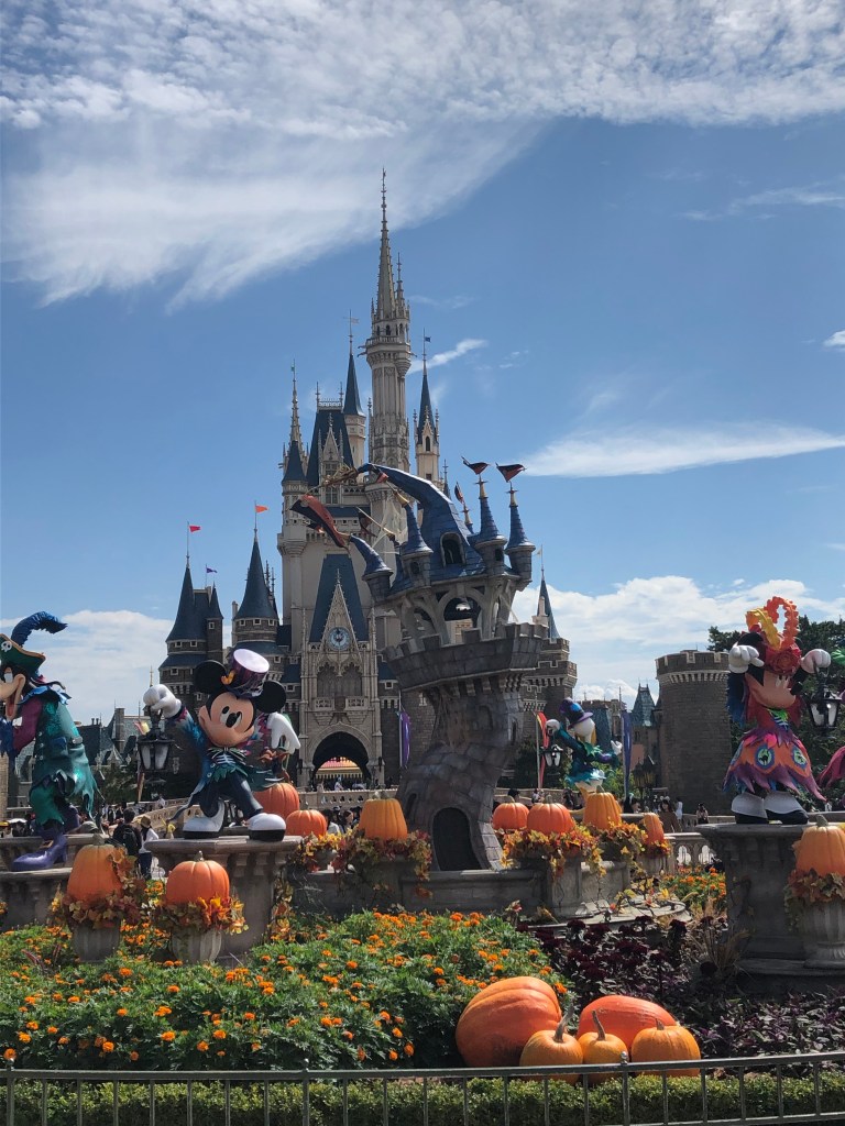 Ad accoglierci, dopo una breve passeggiata nel World Bazar, la via dedicata allo shopping, è il castello della Bella Addormentata. E sul prato antistante il castello, una serie di statue di zucche e fantasmi, accompagnate da alcuni dei nostri personaggi preferiti (Pippo, Paperino & Topolino) vestiti a tema Halloween. Oltre alle decorazioni a tema, una delle particolarità di Tokyo Disneyland durante il periodo di Halloween è la possibilità per gli adulti di visitare il parco vestiti in cosplay. Durante il resto dell’anno solo i bambini possono indossare i costumi dei loro eroi Disney preferiti.