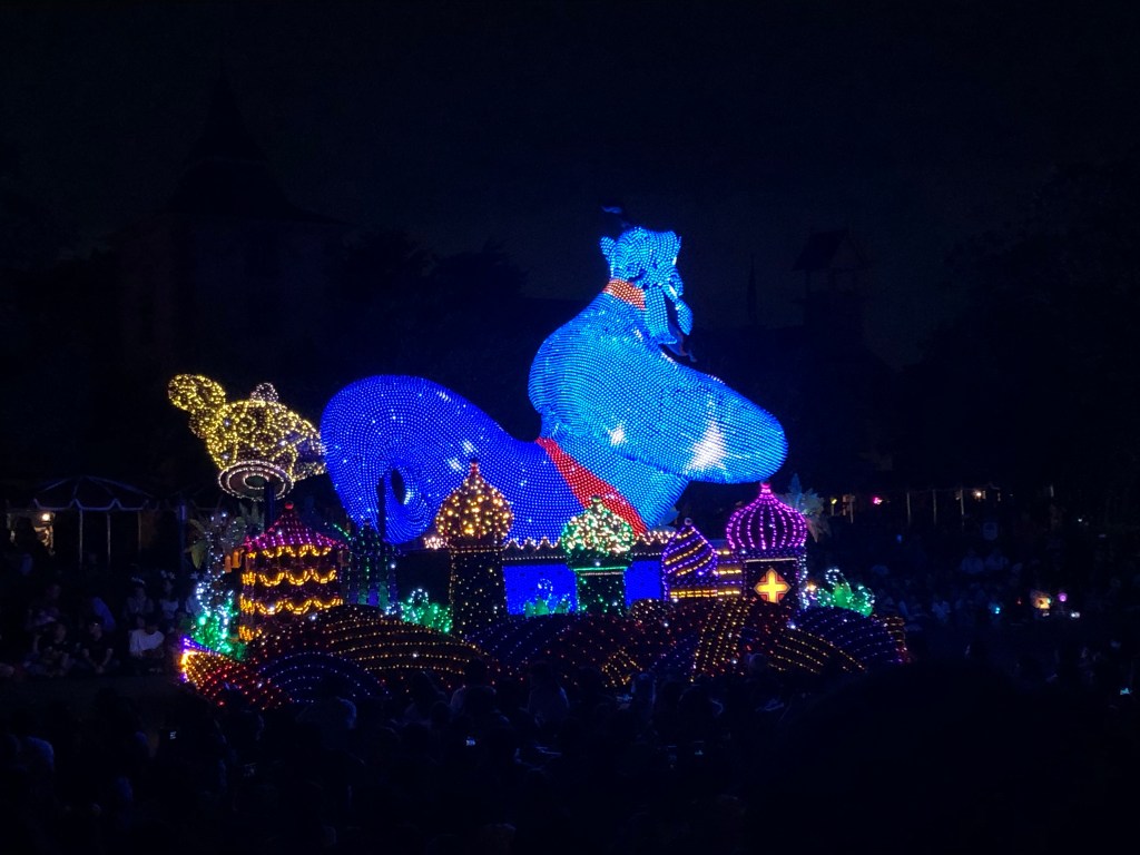 Abbiamo trascorso una bella giornata a Disneyland Tokyo, che si è conclusa con la parata dei carri illuminati, della durata di circa una mezz’ora. Dopo la parata ci sono anche i fuochi d’artificio, che però ci siamo persi perché eravamo in fila per Splash Mountain, che verso la fine della giornata aveva “leggermente” meno fila del solito!