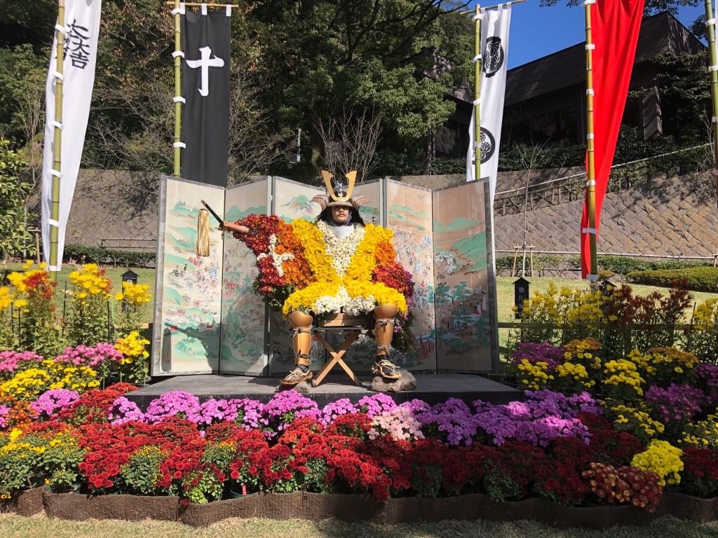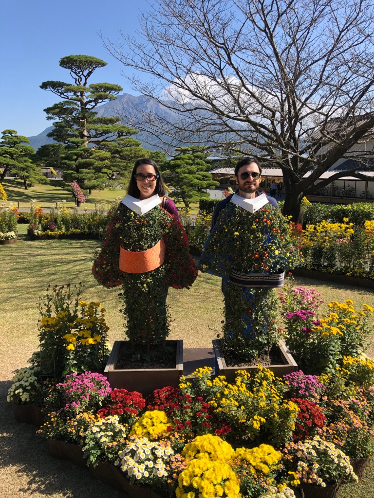 Il Senganen è un giardino paesaggistico, costruito per integrare alla perfezione il paesaggio circostante, in questo caso la baia di Kagoshima e il vulcano. Avevamo già visitato un giardino di questo tipo a Kyoto, che incorporava in quel caso le montagne di Arashiyama. Il Sengan-en ci è sembrato più grande e più vario rispetto a quello di Tenryu-jin, poiché include piccoli fiumiciattoli, laghetti, negozi che vendono prodotti artigianali e addirittura un tempio dedicato ai gatti. Nell’area centrale del giardino si trovano anche delle composizioni floreali per scattare delle foto ricordo divertenti.